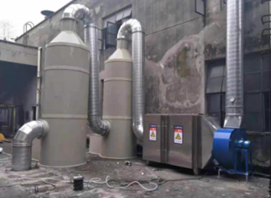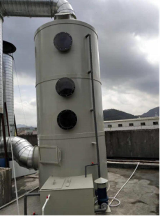當混合氣從洗滌塔底部通入洗滌塔,由于塔板間存在產(chǎn)物組分液體,產(chǎn)物組分氣體液化的同時蒸發(fā)部分,而雜質(zhì)由于不能被液化或凝固,當通過有液體存在的塔板時將會被產(chǎn)親物組分液體固定下來,產(chǎn)生滌作用,洗滌塔就是根據(jù)這一原理設計和制造的。洗滌塔利用氣體與液體間的接觸,將氣體中的污染物傳送到液體中,然后再將清潔氣體與被污染的液體分離,達到清凈空氣的目的。廢氣經(jīng)由填充式酸霧洗滌塔,采用氣液逆向吸收方式處理,即液體自塔頂向下以霧狀(或小液滴)噴撤而下。廢氣則由塔體(逆向流)達到氣液接觸之目的。此處理方可冷卻廢氣、調(diào)理氣體及去除顆粒。再經(jīng)過除霧段處理后,排入大氣中。
